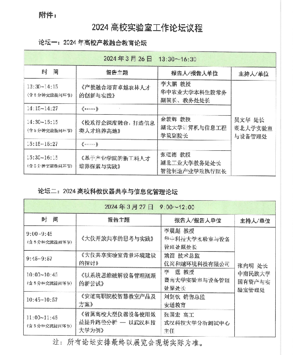 2024第十二届华中科教仪器与技术装备展览会于2024326-28日在武汉中国光谷科技会展中心(高新大道787号)举办。展会期间,将同步开展以科教仪器共享、产教融合为专题的高校实验室工作论坛。